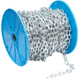 KingChain® Zinc Plated Straight Link Machine Chain is a low carbon steel, electronically welded chain that is not heat-treated. It has shorter links that make it very flexible and particularly well suited for agricultural applications, guard rails, tailgate chains, door chain and playground equipment. Safe Work Load of (SWL) 270 lb (122 kg). Never exceed the Safe Work Load (SWL). **NOTE** Do not use for overhead lifting.