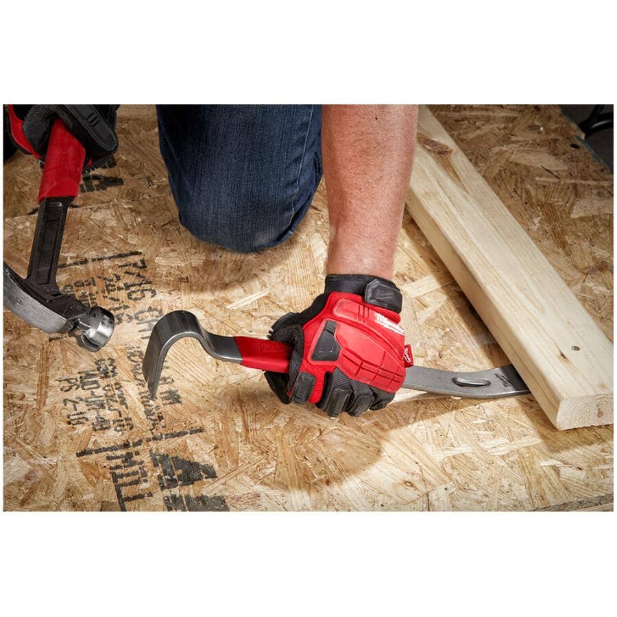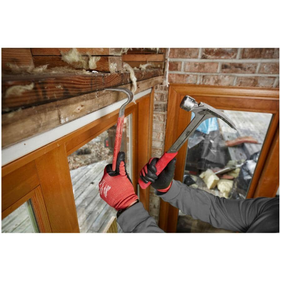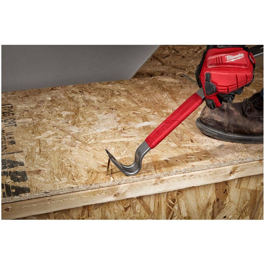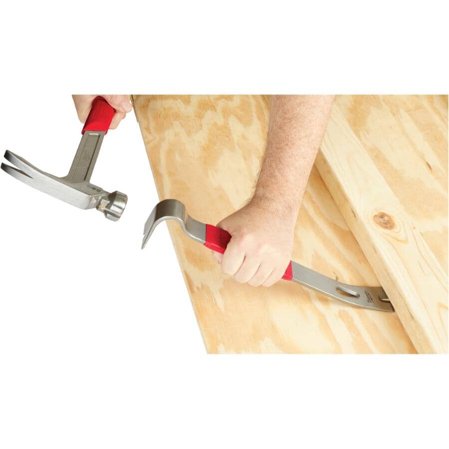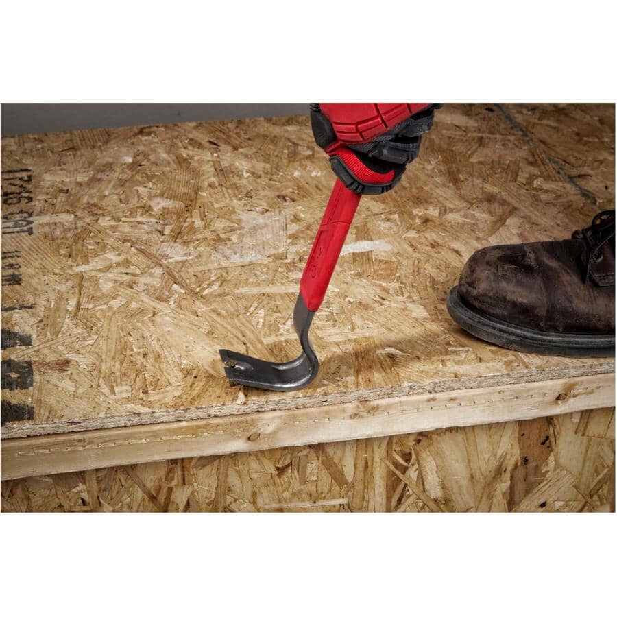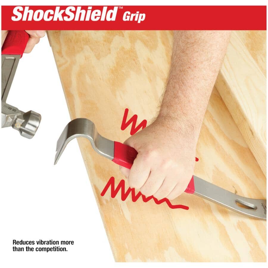 The Milwaukee 15" Pry Bar has a SHOCKSHIELD™ grip for ultimate vibration reduction. This pry bar is designed to withstand the toughest of jobsite conditions while remaining sharp enough to pry, pull and scrape in tight spaces. The claws are induction hardened for added strength, ensuring long-lasting sharpness over the life of the tool. The high leverage head of the pry bar is designed for easier prying.