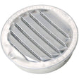 Round metal mini louver installed to provide ventilation in soffits overhangs and the like. Attached screen mesh to protect against the infiltration of pests and insects.