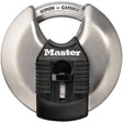 The Master Lock Magnum® No. M40BLCDHC Discus Padlock features a 2-3/4” (70 mm) wide stainless steel body for maximum strength, reliability and corrosion resistance. The fully shrouded design minimizes shackle exposure and protects against bolt cutter attacks. The 3/8” (10 mm) diameter octagonal shackle is 5/8” (16 mm) long and made of Tough-Cut™ boron-carbide, 50% harder than hardened steel, offering maximum resistance to cutting and sawing. The 4-pin cylinder prevents picking and the dual locking ball bearings provide maximum resistance against prying and hammering. The covered keyway offers maximum weather protection, and reinforced body bumper protects against scratches. The Lifetime Guarantee provides peace of mind from a brand you can trust.