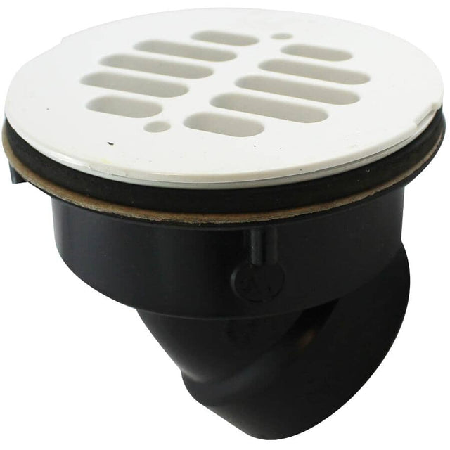 Installed over a 1-1/2″ ABS DWV hub or inside a 2″ ABS DWV Hub to provide shower drainage. Comes with a circular ABS strainer grate. Strainer basket threads into the threaded hub of the drain body and uses a gasket to seal. Install instructions included. 45 degree offset gives a faster drain rate and lower piping profile under the shower.
