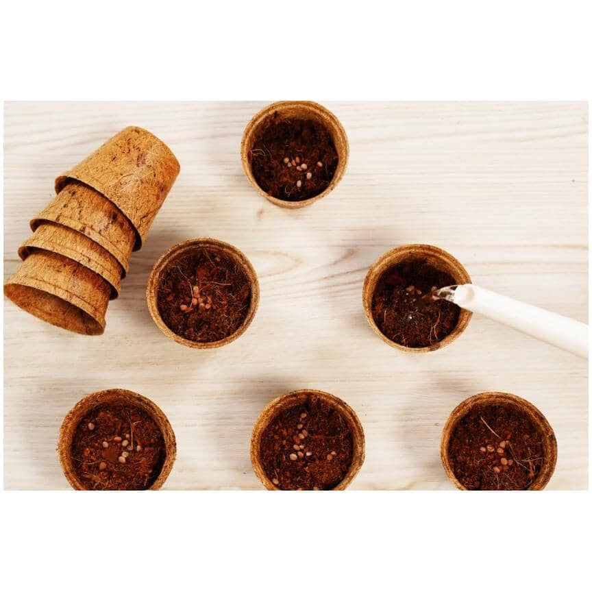 Start your seeds and seedlings in these 2.5” coconut coir round pots that are natural, peat-free, and 100% organic. Made from coconut coir husk, a super hyper renewable resource, they are a sustainable alternative to other kinds of pots like peat, plastic, and paper. Coir pots have performance benefits like resistance to mold when compared to peat and/or paper pots while at the same time being environmentally friendly. The pots are rich in nutrients like iron, copper, zinc, magnesium, and at the same time are pH neutral, odorless, lightweight, and totally safe to grow in.