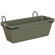 Enjoy all year round, these beautiful and eco-friendly plastic planters for your herbs and flowers. Included with this 3-piece kit is the planter with water reserve, a saucer which clips at the bottom and a metal bracket for easy installation on a balcony or railing. The planter and saucer are UV resistant and frost resistant, so they will not fade when exposed to the sun or harsh weather.