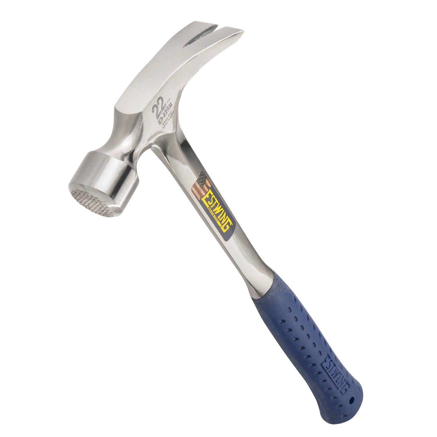 Estwing's most popular framing hammer is the Solid Steel 22oz milled face framing hammer. The head and handle are fully polished and forged in one piece of high-quality American steel. It has a durable milled face and longer handle for more striking power. The Shock Reduction Grip® is molded on and offers the utmost in both comfort and durability while reducing vibrations caused by impact. Made in the U.S.A. for the professional customer.