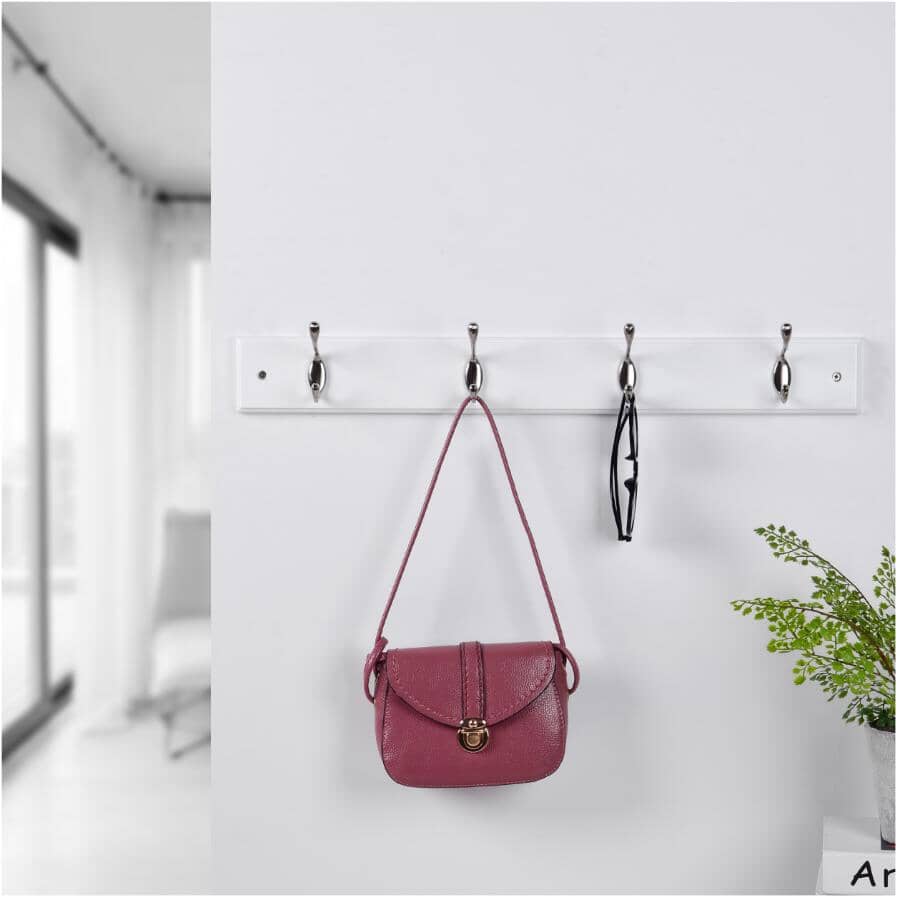 24" 4 Peg White/Brushed Nickel Hat/Coat Rack