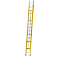The Featherlite 6900 is an extra-heavy duty fibreglass extension ladder series that meets or exceeds CSA Grade 1A, ANSI Type 1A criteria. This 28' ladder features durable non-conductive fiberglass side rails in high visibility safety yellow; rung through rail design; slip-resistant serrated "D" rungs for safe climbing and comfort; premium heavy duty rung locks for durability; black ABS, high impact non-marring end caps; and large heavy duty pivot feet with slip-resistant rubber pads and ice pick. This ladder has a weight rating of 300 lbs.