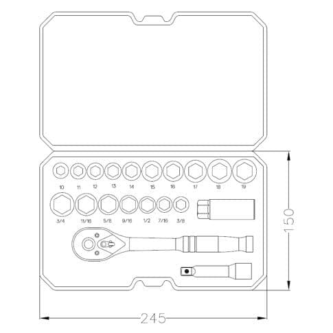 This Benchmark 20-piece SAE/Metric 3/8" Drive Ratchet and Mechanics Socket Mechanics Tool Set is forged from Chrome Alloy steel for outstanding durability and strength. The 18 different sockets allow you to tackle a wide range of basic fastening or repair projects. This Benchmark 20-piece set is ideal for any garage or home workshop.