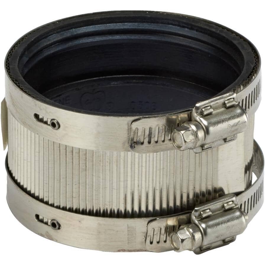 Take on plumbing projects with parts you can count on. Home Hardware has all your plumbing needs for new installation and repairs. This no-hub adjustable Neoprene coupling has a stainless-steel corrugated shield and clamp assembled over a molded one-piece neoprene sealing sleeve. It's specifically designed to join no-hub cast iron soil pip and fittings made in accordance with CISPI STD 310. the chemical characteristics of the neoprene help prevent the gasket from decaying or deteriorating from contact with effluents in pipe or chemicals in soil or air around the pipe.