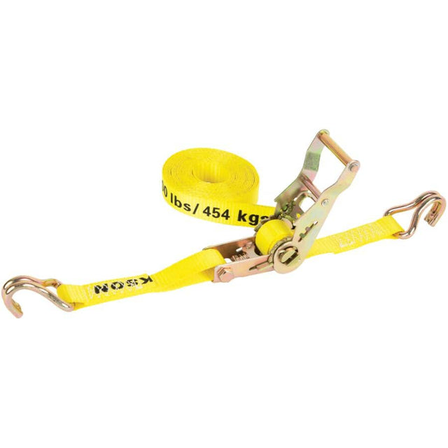 This 1" x 15' yellow ratchet strap and is designed for medium duty applications. Product features double ‘J’ hooks and a chromate finished wide handle ratchet.