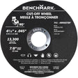 Benchmark premium metal cut-off discs are designed for cutting sheet metal and roof decking. Thinner design minimizes the surface area contact between the material and the cut-off wheel for faster, cleaner cuts. The tough aluminum oxide abrasive is continuously exposed during use to maintain an aggressive cutting edge.