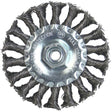 This Benchmark heavy duty knotted wire wheel fits 4” and 4-1/2" angle grinders for deburring, paint removal or surface conditioning and preparation. Rugged knot construction for aggressive action.