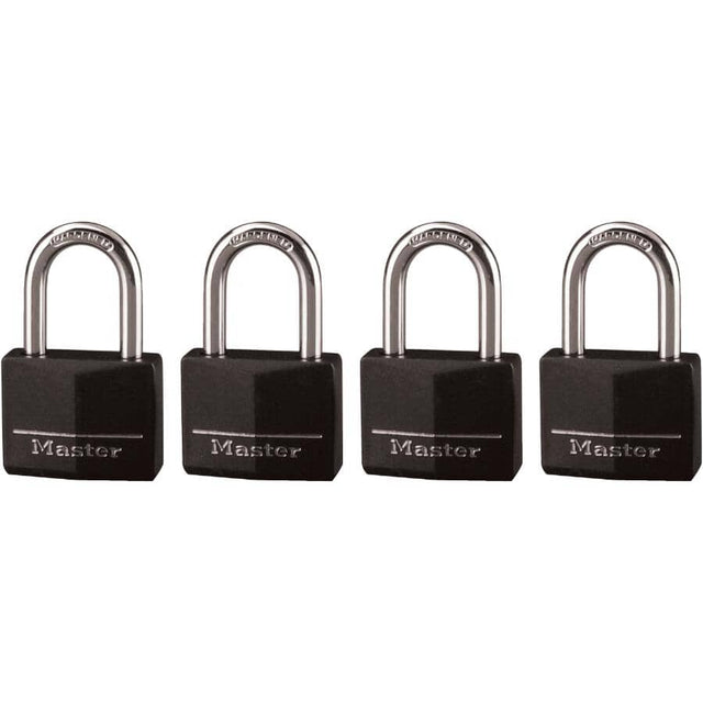The Master Lock No. 141QLF Covered Solid Body Padlock features a 1-9/16” (40 mm) wide black vinyl covered body for scratch and corrosion resistance. The 1/4" (6 mm) diameter shackle is 1-1/2” (38 mm) long and made of hardened steel, offering extra resistance to cutting and sawing. The 4-pin cylinder prevents picking and the dual locking levers provide resistance against prying and hammering.