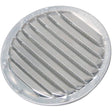 Round metal mini louver installed to provide ventilation in soffits overhangs and the like. Attached screen mesh to protect against the infiltration of pests and insects.