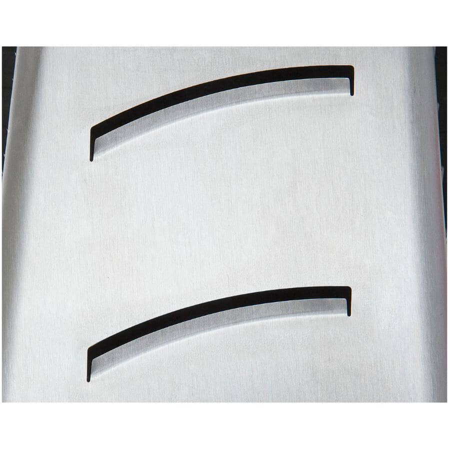 The four-sided box grater has micro-etched edges for sharper more precise cutting. Stainless steel with non-slip rubber footing this grater, with three grating and one slicing surface, will help make meal prep a breeze.