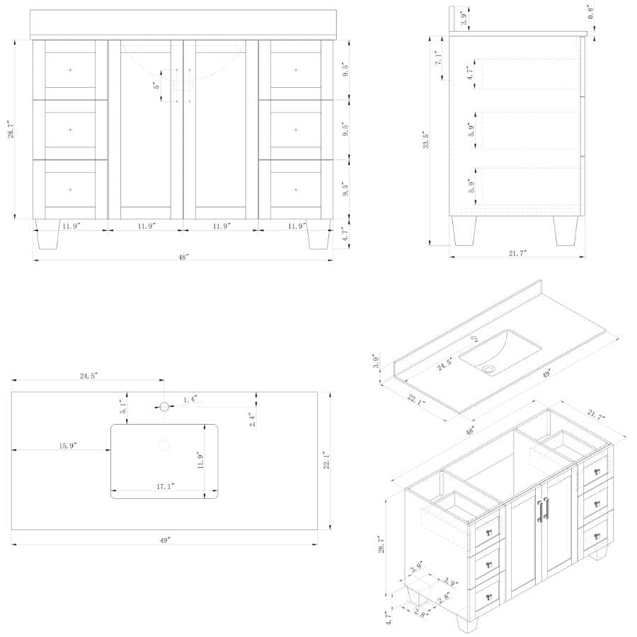 | Assembled product width | 48" |
