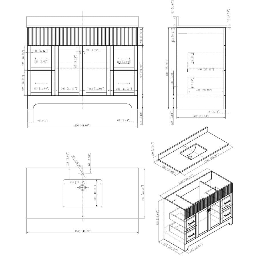 49" W x 22" D Napa Vanity with Cultured Marble Top - 2 Doors + 4 Drawers, Green
