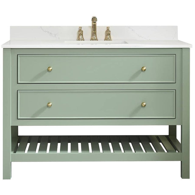 49" W x 22" D Paris Sink Vanity with Calacatta Quartz Stone Top - Four Drawers, Green