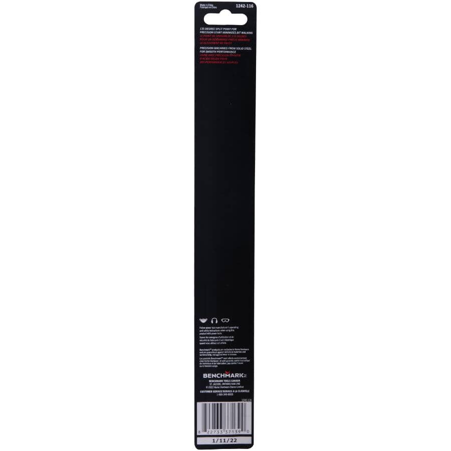 Benchmark drill bits are constructed from premium high-speed steel and ground from solid steel for maximum performance. 135-degree split point allows for a precision start without bit walking. Longer 12” length provides added reach. Best when drilling metal, wood, and plastic.
