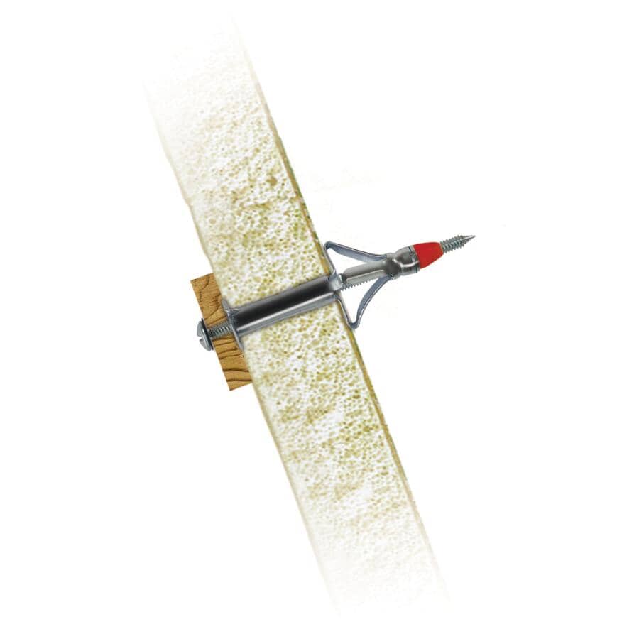 The Hollow Wall Drive Anchor is made entirely of steel and is vibration resistant. It does not require pre-drilling: Simply tap the anchor into the drywall using a hammer. The screw head adapts to Philips/Square/Slot bits.
