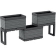 The modular garden allows you to create your own gardening space on your balcony or any in other confined space. The kit includes 3 grey planters and 2 legs. The product is designed for easy tool-free assembly. The blocks under the planter help you to adjust the width of your modular structure by simply selecting the appropriate slot. You can collapse and stack the planter and legs for easy storage.