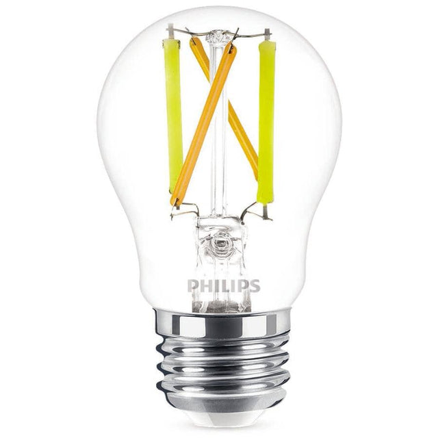 Philips LED Decorative Fan bulb. Soft, sparkling white light. Instant-on light. Mercury and RoHS compliant construction. Similar size and shape as regular bulb.