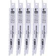 6" 6/12 Tooth Bi-Metal Wood Reciprocating Saw Blade - 5 Pack