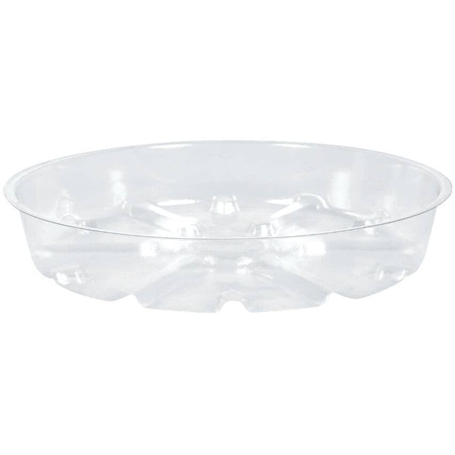 This lightweight, economical clear saucer helps prevent water drippage and protect surfaces. Uniquely designed reservoir helps to keep soil moist longer. Coordinates with any colour pot.