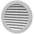 Round plastic mini louver installed to provide ventilation in soffits overhangs and the like. Molded grill to protect against the infiltration of pests and insects.