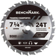 This Benchmark 7-14" x 24-tooth circular saw blade is designed for framing applications and has a 5/8” arbor. Stamped expansion slots with copper inserts are designed to disperse heat and prevent blade deformation caused by overheating. Durable carbide tips and ATB (Alternate Top Bevel) grind produce clean, accurate cuts.