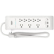 8 Outlet Surge Protector with 3 USB Ports - 6' Cord, White