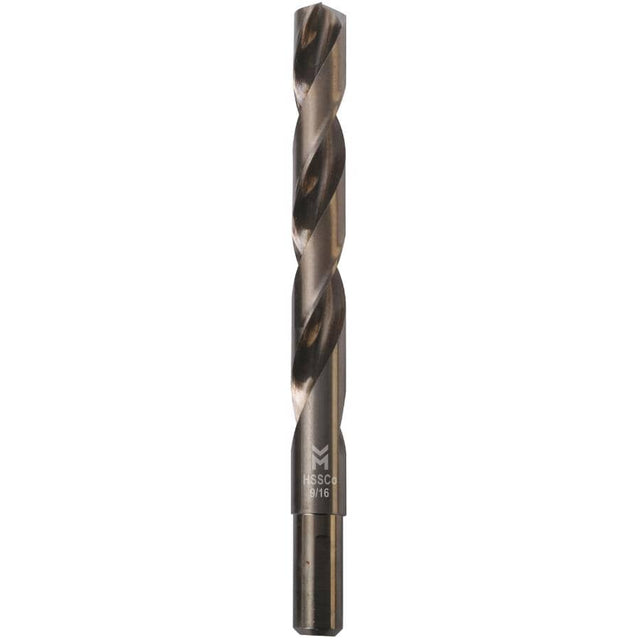Benchmark Cobalt drill bits are constructed with premium M35 steel with 5% cobalt and ground from solid steel for maximum performance. Unique 3 cutting edges provide superior performance versus 135 degree split point. The third flute distributes cutting work more evenly and decreases pressure on each cutting edge. Cobalt bits are able to cut through the most hardened metals, including bronze, cast iron and stainless steel.