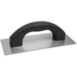 This HOME ESSENTIALS 9" x 4" V-notched trowel with a 3/16" x 5/32" x 3/16" notch size is commonly used in tile installation for spreading thin-set mortar or adhesive onto surfaces before laying tiles.