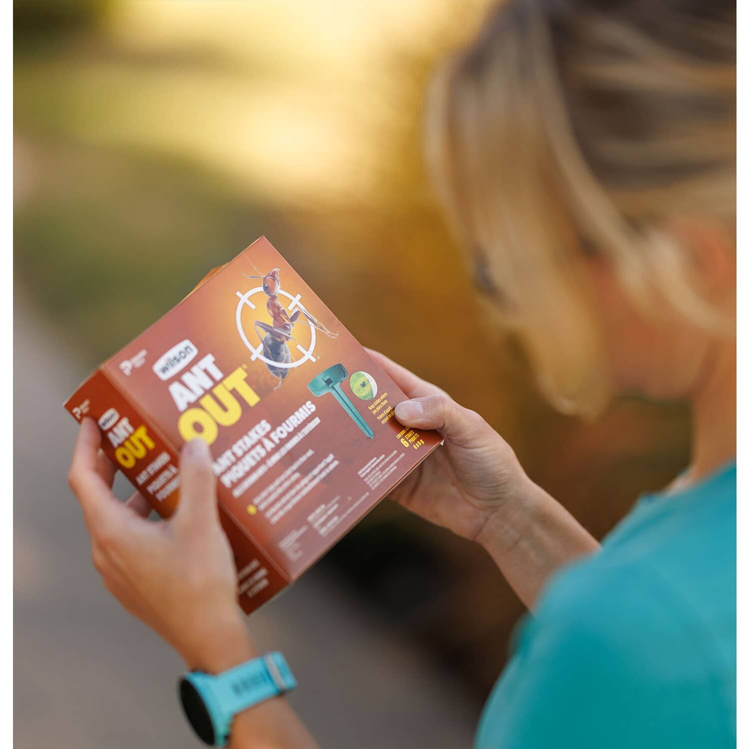 Wilson AntOut Outdoor Ant Stakes are designed to effectively kill ants. Place stakes where ants are seen such as near doors and other entrances, next to patios, around house foundations, garages, sheds, in potted plants, in and around garden beds, and next to ant hills (do not place directly in ant hills). Ants will bring the bait back to their nest to feed the colony, which usually destroys all of it, including the queen. Comes with 6 child-resistant stakes.