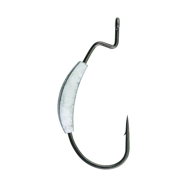 Weighted Swimbait hook sizes include 7/0 to 3/0. Needle point with SlickSet Coating for easier penetration. Hook Sizing on Lead for easy recognition. Centering pin on bait keeper for easy rigging. Smoke Satin Finish. Package features innovative resealable clam for tackle management.