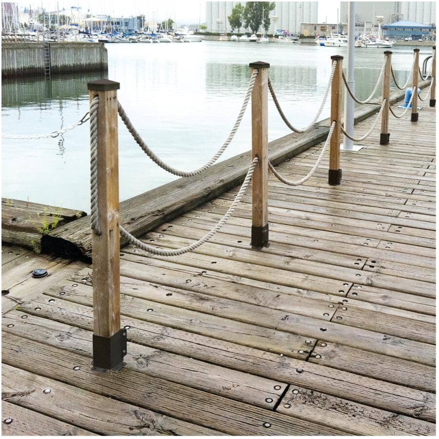Steel base designed to solidly attach a square post to an exterior surface. Resistant, sturdy, easy to install. Baked powder coating finish provides excellent rust resistance. No maintenance required, 4'' x 4", black. Tightening bolts included. For use with 3-1/2 in. x 3-1/2 in. square posts (finished measurements).