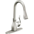 The MOEN Boutique® model kitchen faucet in spot-resistant stainless steel adds style and function to your kitchen sink. The pullout wand includes aerated stream, forceful spray and pause functions. Power Clean™ spray technology provides 50 percent more spray power versus most of MOEN's pulldown and pullout faucets without. The faucet is equipped with the Reflex™ system for smooth operation, easy movement and secure docking. This kitchen tap allows for flexible installation, fitting 1 or 3 hole kitchen sinks with an 8" centre. The Duralock™ quick connect system means installation is easy - no tools required!