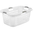Make laundry day easy with Sterilite’s 71 Liter Ultra™ Basket. Its generous 2 Bushel capacity is perfect for sorting a household of clothing, towels or sheets. A wide rectangular opening makes for comfortable loading and unloading of large amounts of laundry. Its sturdy rim provides added strength and the four newly designed handles offer a comfortable carrying grip making it easy to carry from any angle. When not in use, the laundry baskets stack neatly and nest together creating more efficient storage space in your home. The large, square hole pattern increases air flow for added ventilation and matches any home décor.