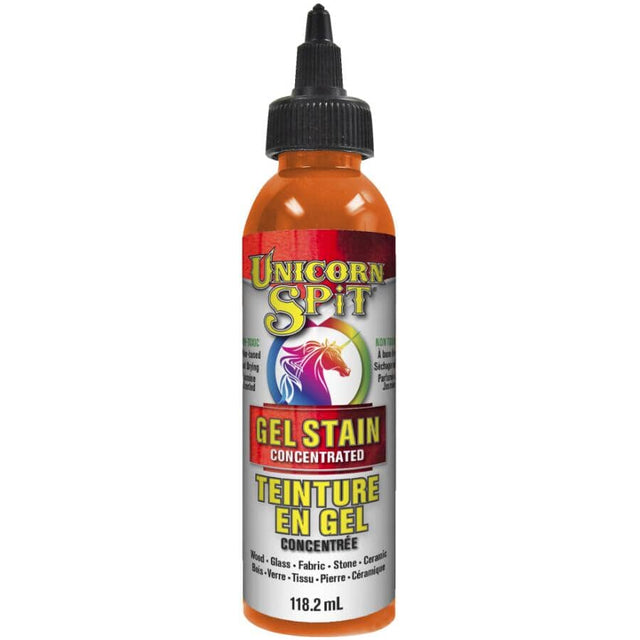 Unicorn Spit is a paint, gel stain and glaze concentrate - all in one bottle. The unique formula can be used as a paint for metal, fabric, pottery, wicker, concrete and laminate. Ideal for creating new or refinishing thousands of projects and excellent for crafters, DIYers and pros alike. Available in 14 vivid colours. Penetrates deep into bare wood grain or glazes over existing finishes, brightening and highlighting painted surfaces. Can be used over existing finishes as a luminous glaze.