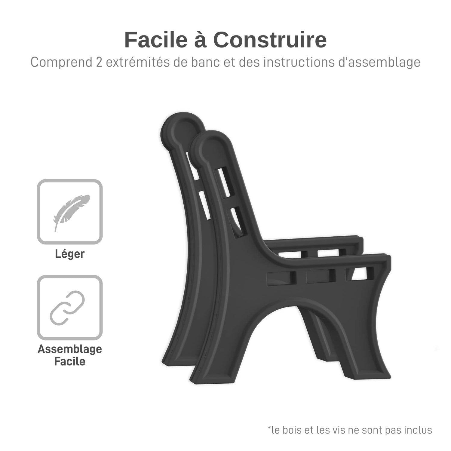 Custom Length Lightweight Indoor or Outdoor Bench Ends - Graphite, 2 Pack