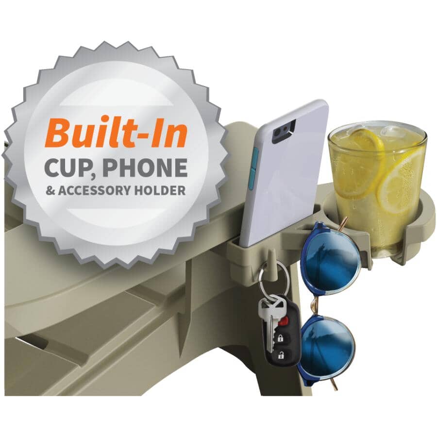 Improved design is wider, taller, and more upright-making getting in and out even easier. Innovative retractable storage compartment holds smartphone, cups, and much more. Enhanced comfort with even more ergonomic back-hugging curvature. Contemporary new design is a fresh take on the traditional resin Adirondack.
