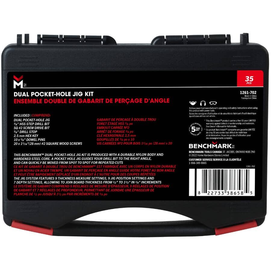 A pocket hole jig guides your drill bit to the right angle, and can quickly be moved from spot to spot for repeated cuts. This Benchmark Dual Pocket-Hole Jig Kit is produced with a durable nylon body and hardened steel core.
