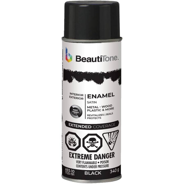 The satin finish of the BeautiTone™ fast-dry decorative spray enamel makes it easy to transform ordinary into extraordinary. Available in seven colours. Designated with the Home Owner's Guarantee.