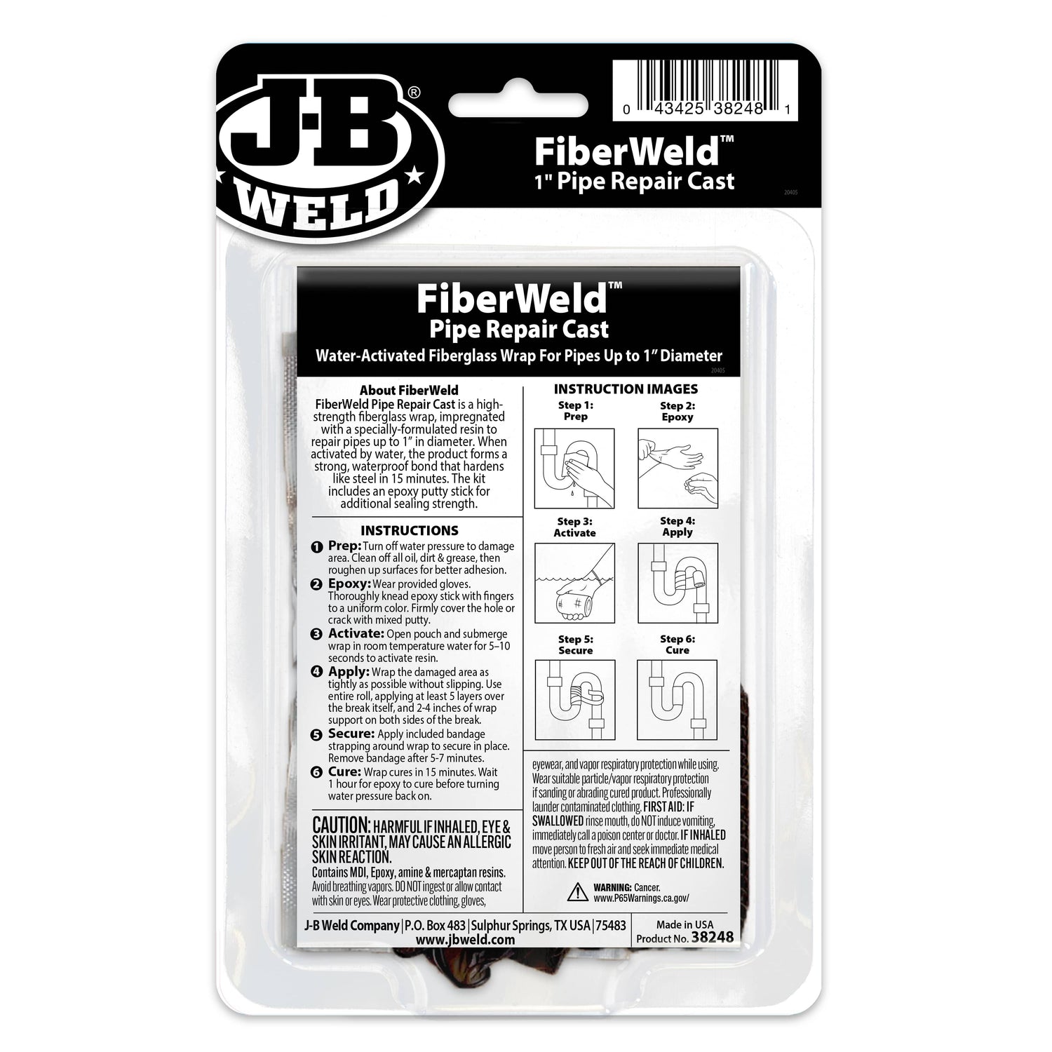 FiberWeld(TM) Pipe Repair Cast is a high-strength fibreglass wrap, impregnated with a specially-formulated resin to repair pipes up to 1" in diameter. When activated by water, the product forms a strong, waterproof bond that hardens like steel in approximately 15 minutes. This kit includes an epoxy putty stick for additional sealing strength.