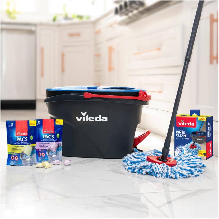 Take the guesswork out of cleaning your floors with the perfectly portioned and convenient cleaning solution, Vileda® PACS. Mixed with 6L of water, each PAC has the deep cleaning power for every hard-surface floor in your home, including hardwood, tile, vinyl and laminate. Once you drop a Vileda® Floor Cleaning PAC in your bucket, you’ll see the bubbles and smell the refreshing scent of Lavender. Then, it’s time to mop! Made with 97% naturally-derived ingredients and powerful enzymes that dissolve stubborn dirt and grease for a streak-free, thorough clean you can see– without the addition of harsh chemicals.