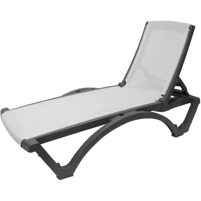 Sit back and relax on this resort style chaise lounge with a four position adjustable backrest that ensures a comfortable seating position for reading, sleeping or just lounging around. Made with quick dry texteline sling fabric. The lounge has a scratch and fade resistant frame with a grey texteline that is tear resistant.
