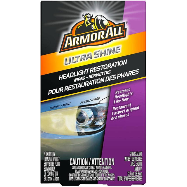 These Ultra Shine headlight wipes from Armor All® are extremely easy to use. The 2-step process wipes away oxidation to quickly restore a vehicle's headlights. 6 pack.