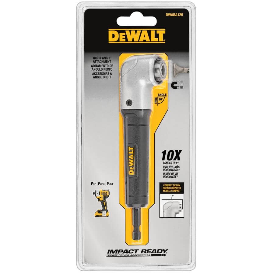 DEWALT IMPACT READY® Right Angle Attachment provides users with best-in-class performance and accessibility for close-quarter fastening and drilling applications, due to its compact 1.5" front-to-back footprint and metal-gear case design. Robust magnetism is projected through the unit to give users fastener retention, enhancing the overall user experience and functionality.