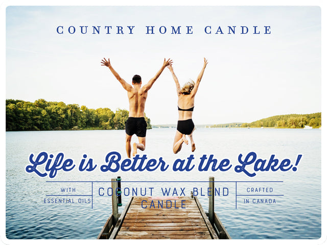 Fun Spirited "Life is Better at the Lake" Candle to brighten and freshen any home. Luxurious Hand-poured Coconut Wax Blend. Adorned with a beautifully engraved keepsake rustico wood lid. The infused fragrance is our ever popular summer time fragrance of "Summer House".