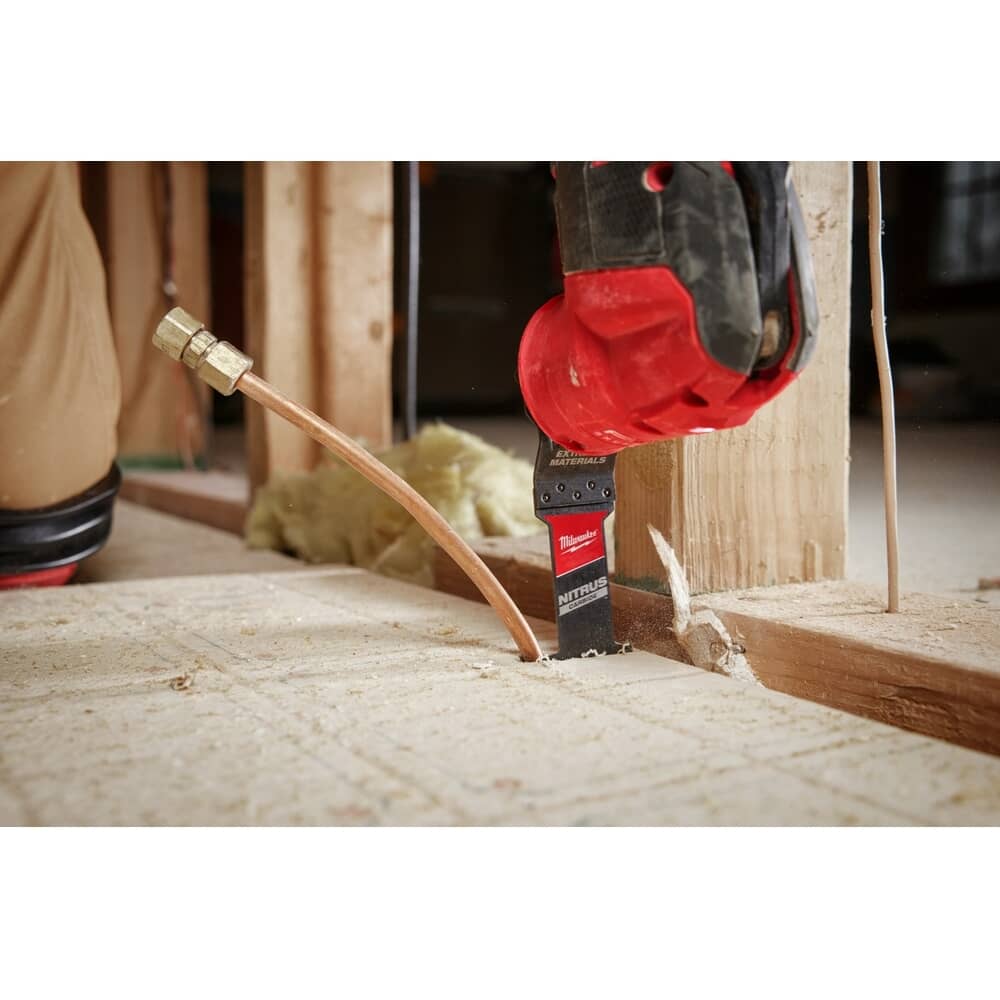 The MILWAUKEE® NITRUS CARBIDE™ Extreme Materials Universal Fit OPEN-LOK™ Oscillating Multi-Tool Blades provide the ultimate cutting experience, delivering the fastest cutting and longest life on the jobsite. The extreme materials NITRUS CARBIDE™ multi-tool blade delivers 2X more cuts than Carbide Teeth blades - capable of hundreds of cuts in screw-embedded wood. The extreme materials blade is ideal for the fastest cutting in screw-embedded wood, nail-embedded wood, plaster, cement board, drywall, and PVC. The new Universal Fit Open-Lok Anchor is reinforced for added strength and control and allows for quick blade changes across 100+ multi-tools. Not compatible with starlock tools. MILWAUKEE® oscillating multi-tool blades are designed and made in the USA with global materials. Available in 1, 3, or 5 packs.