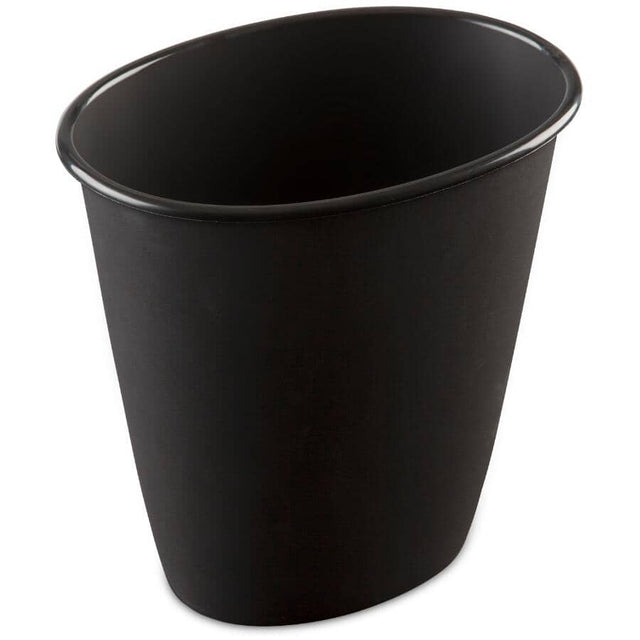 The Sterilite 1.5 Gallon Oval Vanity Wastebasket combines a small footprint with a narrow profile. This discrete wastebasket is the perfect option for use next to a desk in an office, by the sink in a bathroom or kitchen, in the bedroom or stored in a craft room where narrow spaces require a space-efficient solution. A clean, oval aesthetic and modern design combined with a textured exterior and polished rim coordinate with any home, office, or bedroom décor. This item offers a tight nesting design and offers a 1.5 gallon capacity. This wastebasket also accommodates a standard plastic shopping bag.